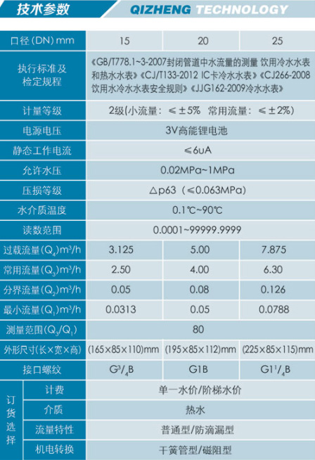 產(chǎn)品概述: 該表用于計(jì)量管道中的熱水水流量,產(chǎn)品符臺(tái)J B/T8802 —1998和CJ/T133—2012標(biāo)準(zhǔn),該表是采用 的低功耗一體--化集成微控制 器技術(shù)、脈沖水表技術(shù)等優(yōu)化設(shè)計(jì)的機(jī)型,是新一代的智能熱水計(jì)量設(shè)備。按消費(fèi)量計(jì)費(fèi),實(shí)現(xiàn)公平交易,杜絕濫用浪費(fèi),有利目標(biāo)成本管理,推動(dòng)資源合理配置、節(jié)約用水。特別適用于小區(qū)居民、公 寓用戶、樓宇辦公、企事業(yè)單位等場(chǎng)所的熱水計(jì)量及控制。